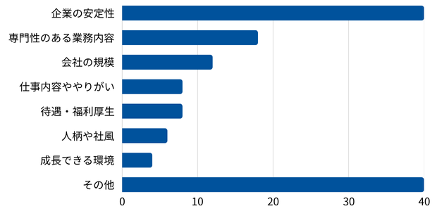 先輩たちは特に「企業」の安定性とそれを支える事業内容が決め手になった人が多いですね!